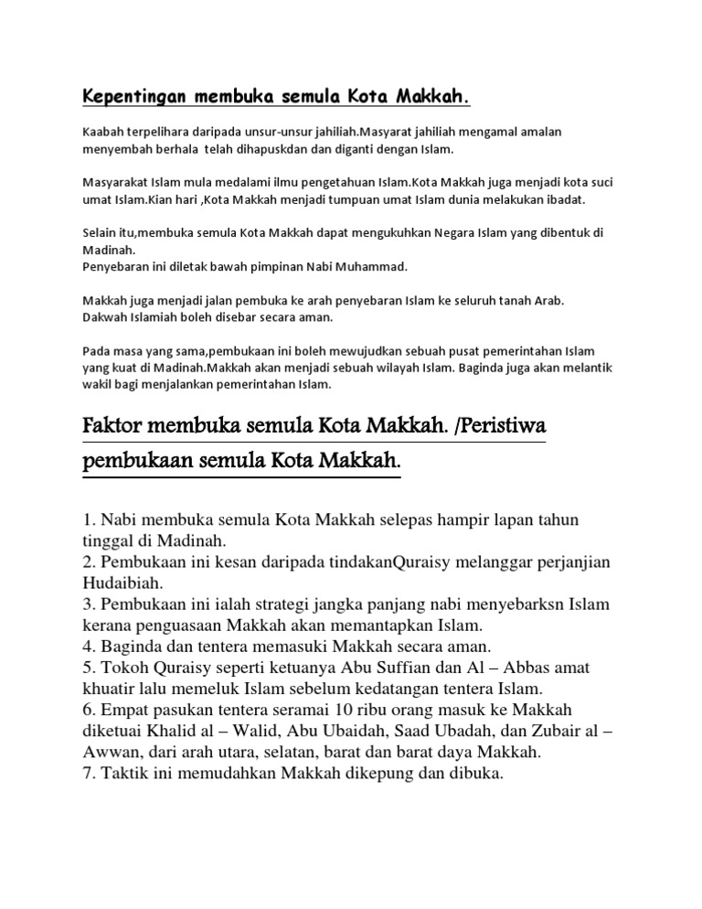 Study Learn with flashcards games and more for free. 5 Penduduk Mekah tertarik dengan Islam. Kepentingan Pembukaan Semula Kota Makkah.